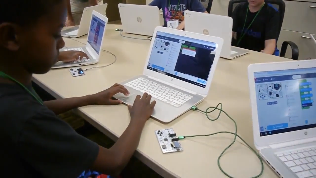 Oakland Schools Summer STEM Camp used the BrainPad and Microsoft MakeCode to teach kids coding for embedded development.
