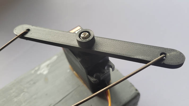 We created a 3d printed servo horn and screwed it onto the servo motor.