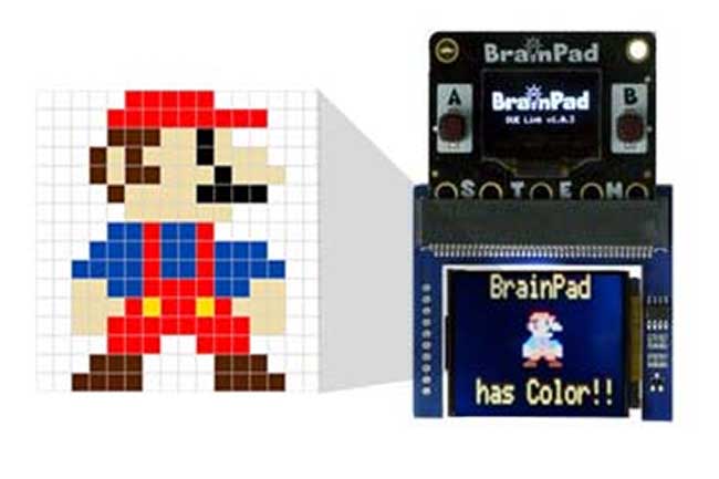 BrainPad now supports full color displays. Just last month we added JavaScript support this week we added support for color displays. Graphics is supported on a few color SPI displays: ILI9342,ST7735, and ILI9341. Visit the BrainPad Lessons page for details using your coding language of choice.
