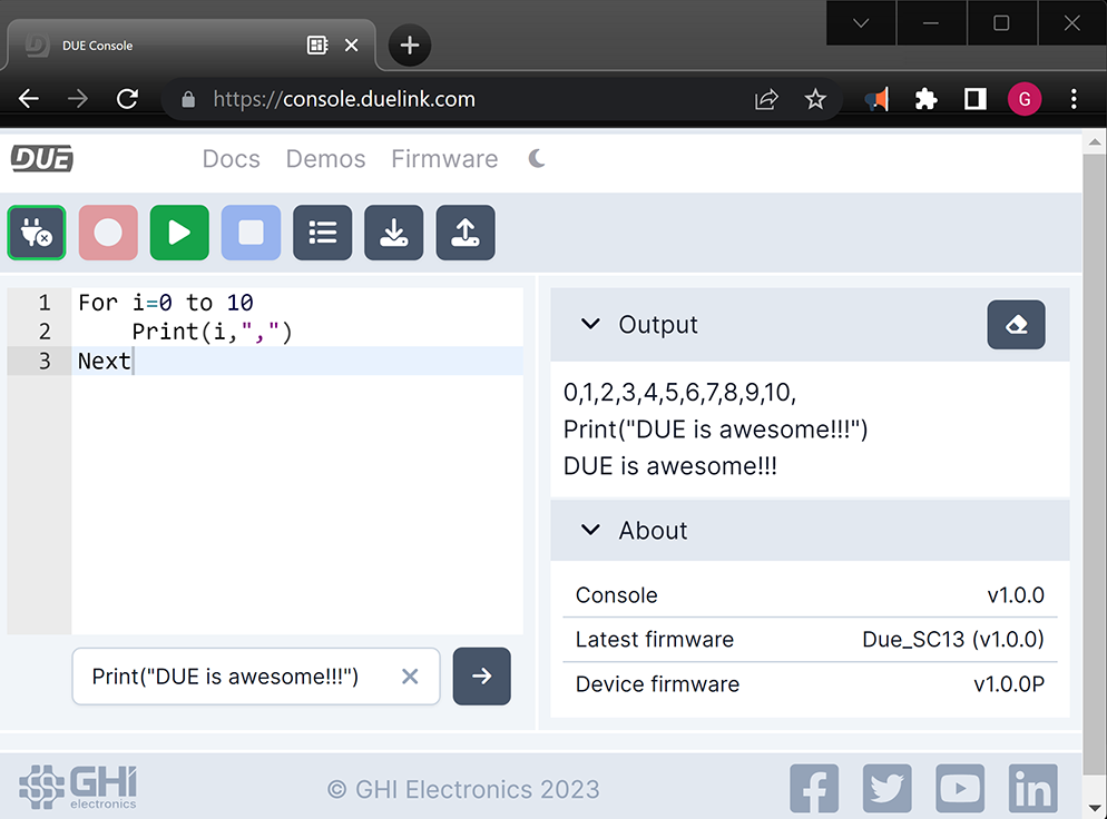 The learning does not end at Python and such, the DUE Link platform includes a scripting language allowing the device to run independent from any host. This very easy-to-learn scripting language is inspired by BASIC and Python, giving the user the simplicity and flexibility they need. The online console IDE includes everything you need to code the BrainPad Rave (Edge or Pulse). The console includes sample code, firmware update, plug-and-play user experience. Go ahead, we invite you to try today.