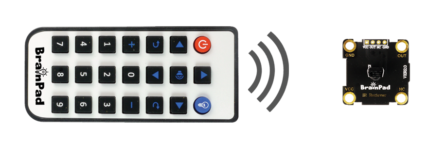 There are thousands of remote and receiver options but we will use a BrainPad Microcomputer with IR Receiver from the BrainClip kit.