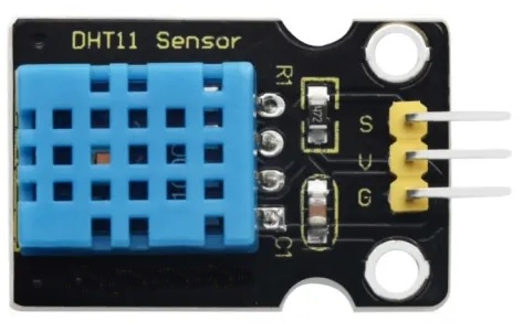 DHT are common temperature and humidity sensors. These sensors are typically found modules for easier connections. DHT sensors communicate with the BrainPad very simply through one of its digital inputs. The other two pins are for power and ground.