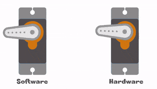 The accuracy difference is invisible in most cases but can be slightly noticed in the case of servo control. The Servo() feature works on any pin as it is handled by software control but it only offers 20 steps though the whole 180-degree range. In this animated gif, the software-controlled servo will jump into position, where the hardware-controlled one moves more smoothly. As you can tell, it is not too bad and works in most cases.