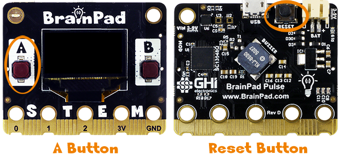 Hold both A and B buttons down for a couple of seconds to instruct the BrainPad Pulse to get ready for accepting MakeCode programs.