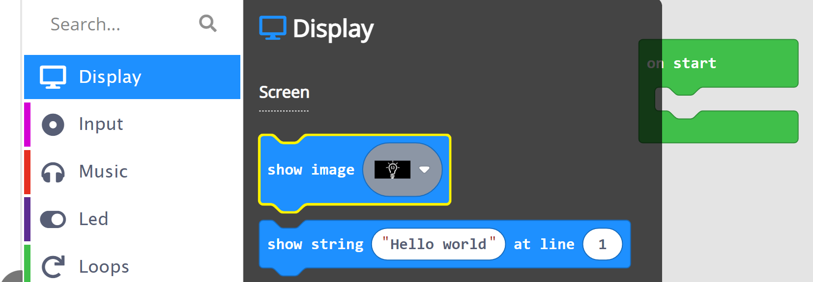 The on start block is what will happen when the program starts!