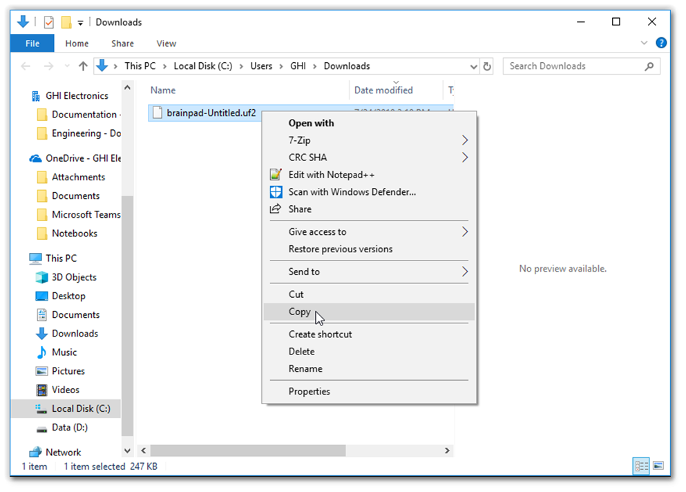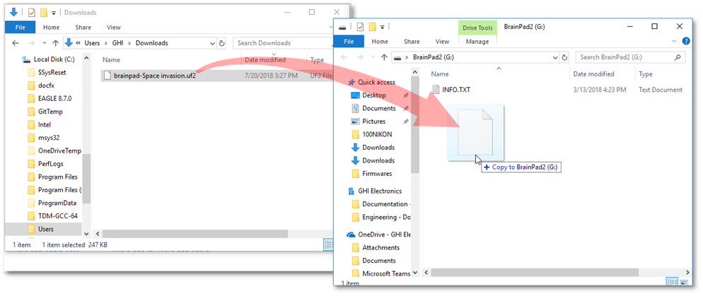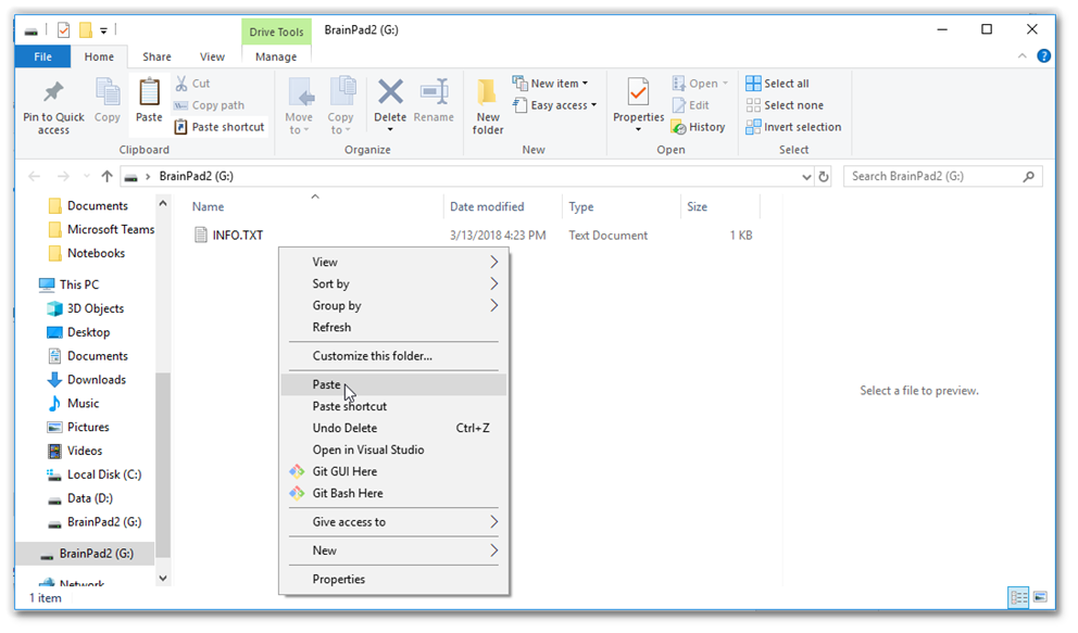 We will need to copy the downloaded file onto the virtual BrainPad drive we have just seen.