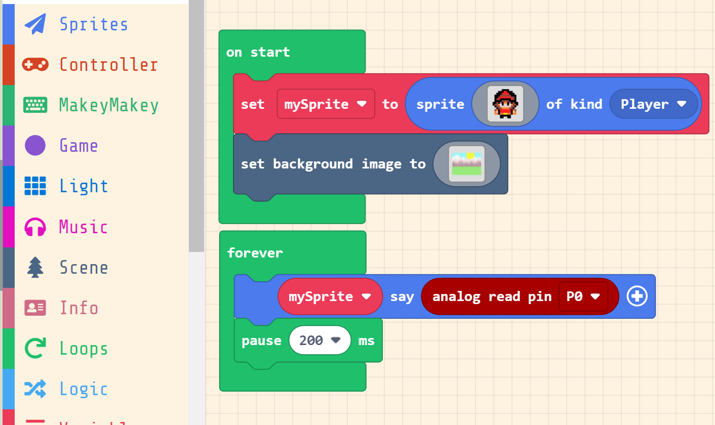 To make it more clear, let’s add a sprite that tells us how much the value that sensor is reading is when there is light and when not.