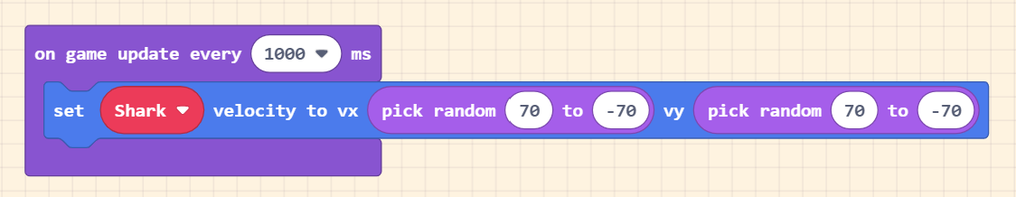 Then, we will make the shark move in random positions using this code.